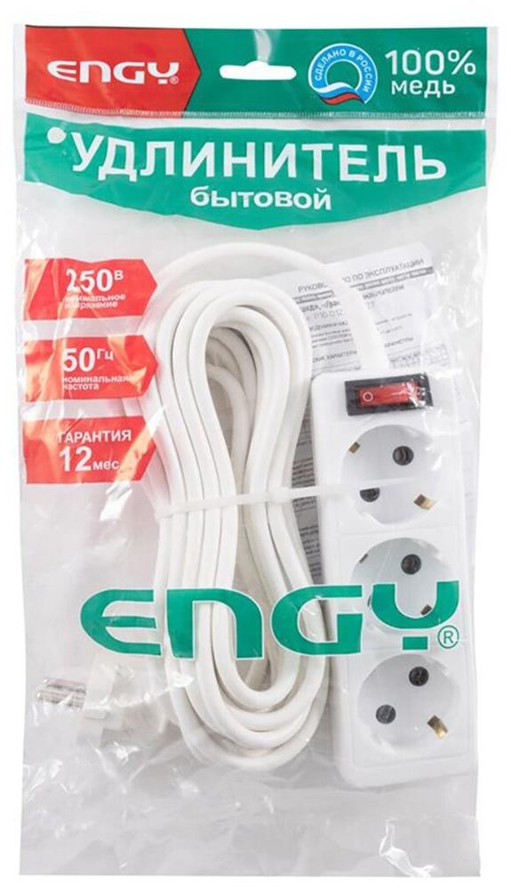 ENGY Удлинитель с выключателем "Гранд" 7м/3роз. с/з (ПВС 3х0,75) (186733)