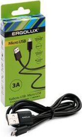 ERGOLUX (15093) ELX-CDC01-C02 (Кабель USB-Micro USB, 3А, 1,2м, Черный, Зарядка+Передача данных, Коро