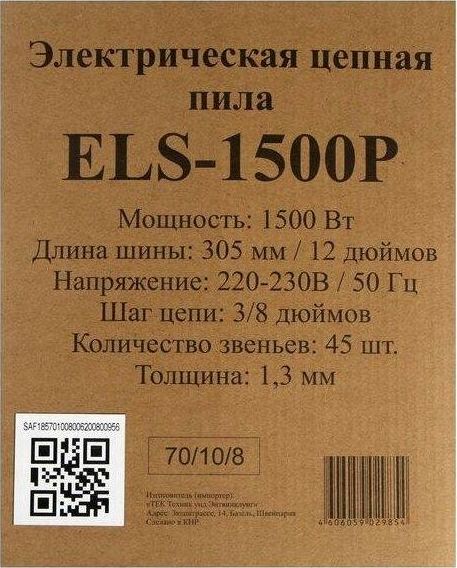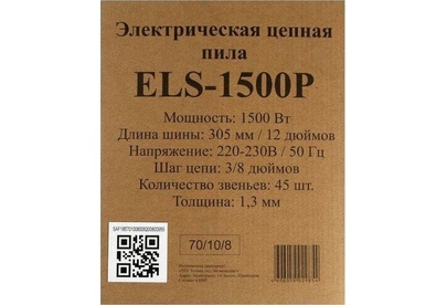 Электропила Тип двигателя Электрический Номинальная мощность, Вт 1500 Класс товара Полупрофессиональный Напряжение сети, В/Гц 220-230/50 Длина шины, мм 305 Длина шины, дюйм 12 Шаг цепи 3/8 Толщина звена, мм 1,3 Количество звеньев, шт. 45 Тормоз цепи Нет Автоматическая смазка цепи Да Тип привода Прямой Скорость пиления, м/с 13.6 Тип затяжки цепи Стандартная, боковая Вес брутто, кг 3,95