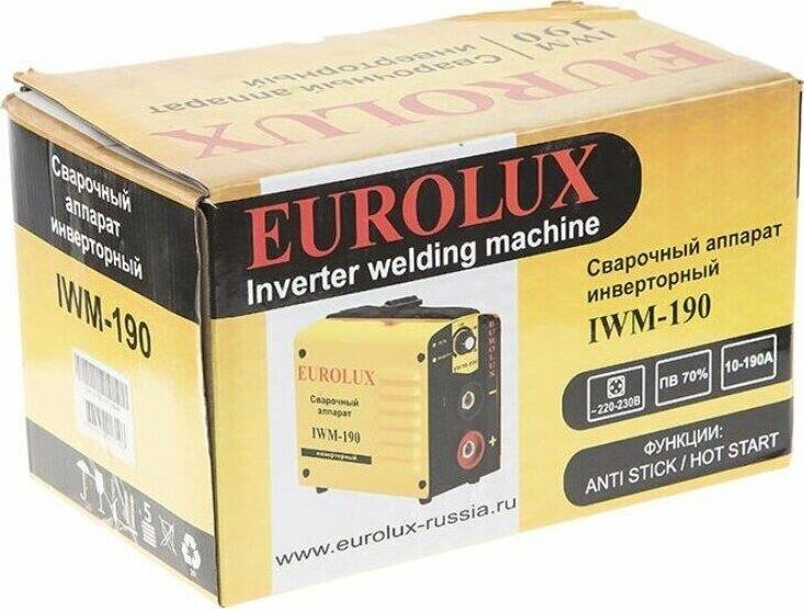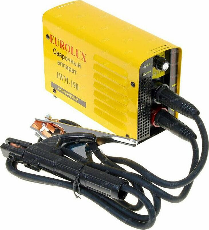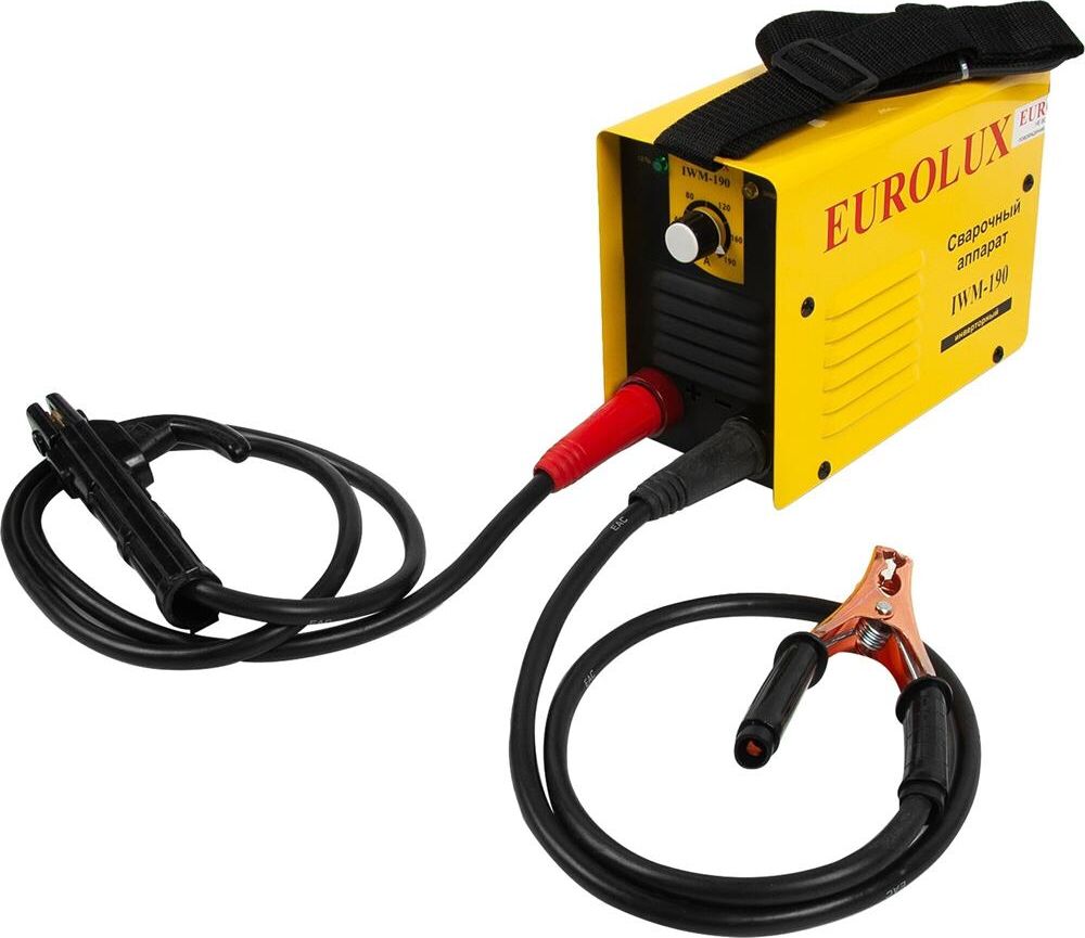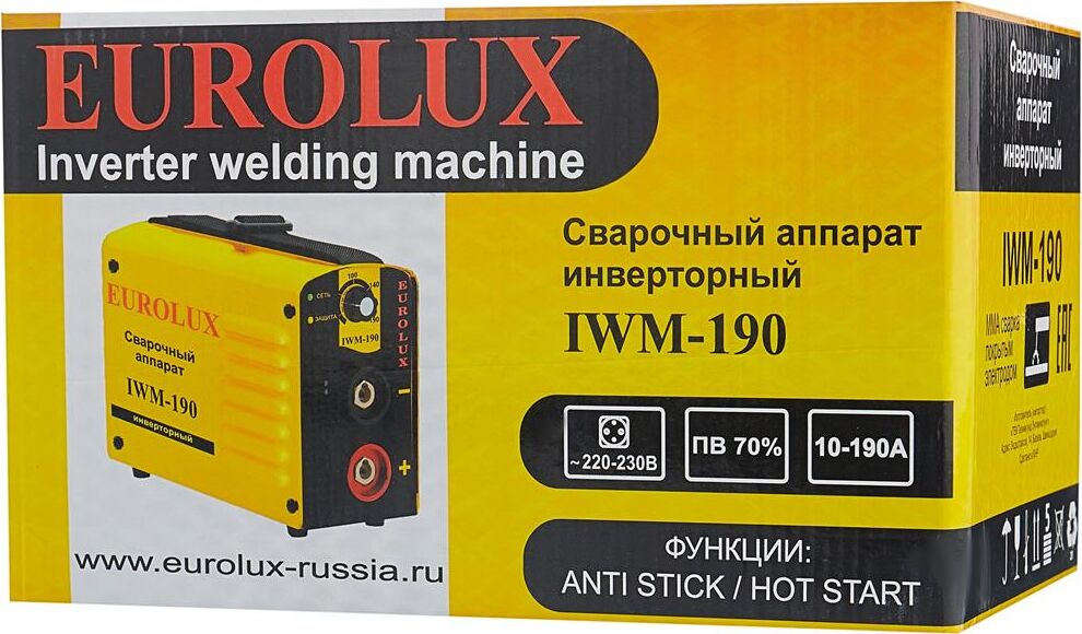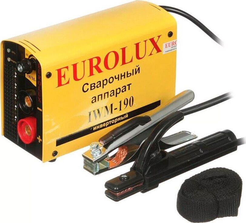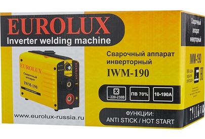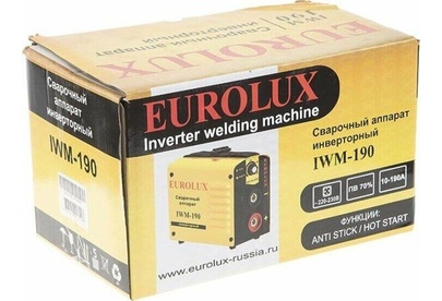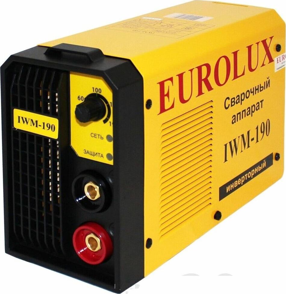 Сварочный аппарат EUROLUX IWM190. Диапазон сварочного тока, А – 10-190; Входное напряжение, В – 160-260; Максимальный диаметр электрода, мм - 5; Гарантия, мес - 12;