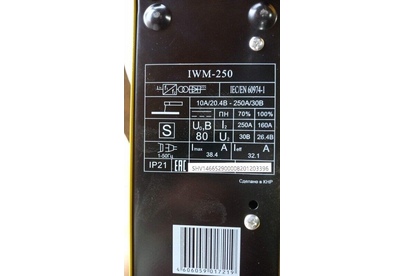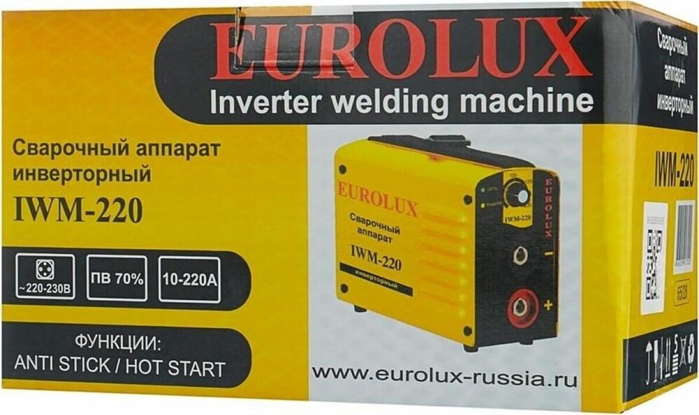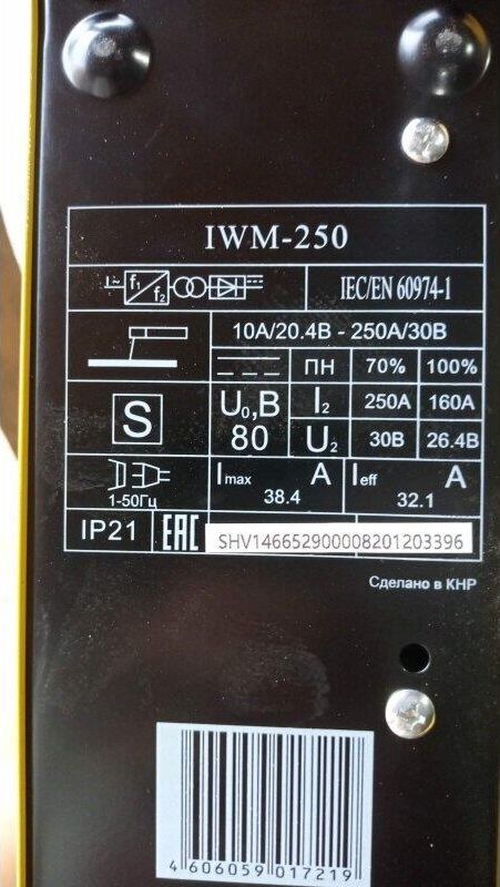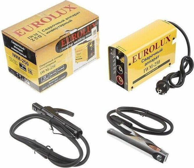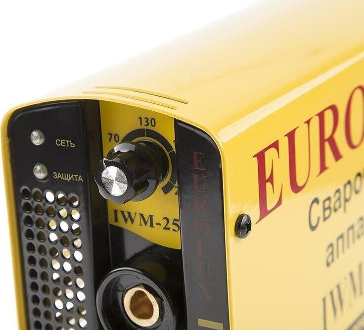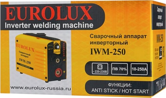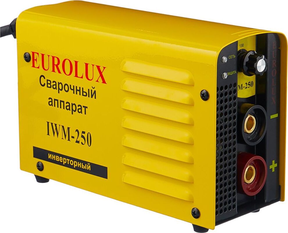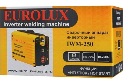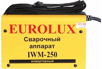 Сварочный аппарат EUROLUX IWM250. Диапазон сварочного тока, А – 10-250; Входное напряжение, В – 160-260; Максимальный диаметр электрода, мм - 5; Гарантия, мес - 12;