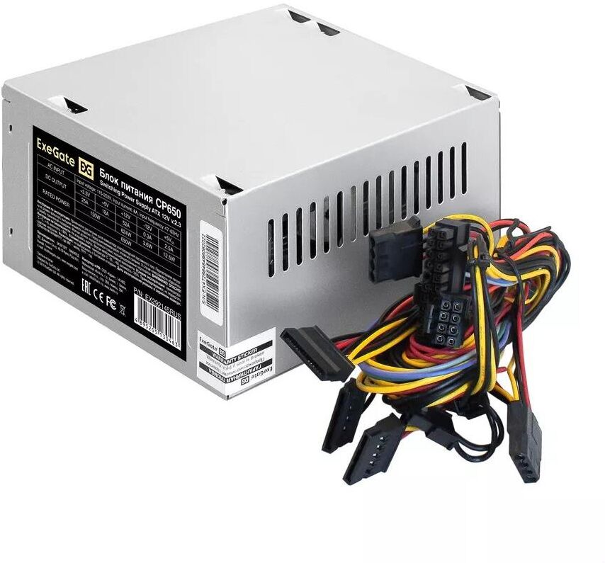 EXEGATE Блок питания 650W CP650 (ATX, 8cm fan, 24pin, (4+4)pin, PCI-E, 3xSATA, 2xIDE)