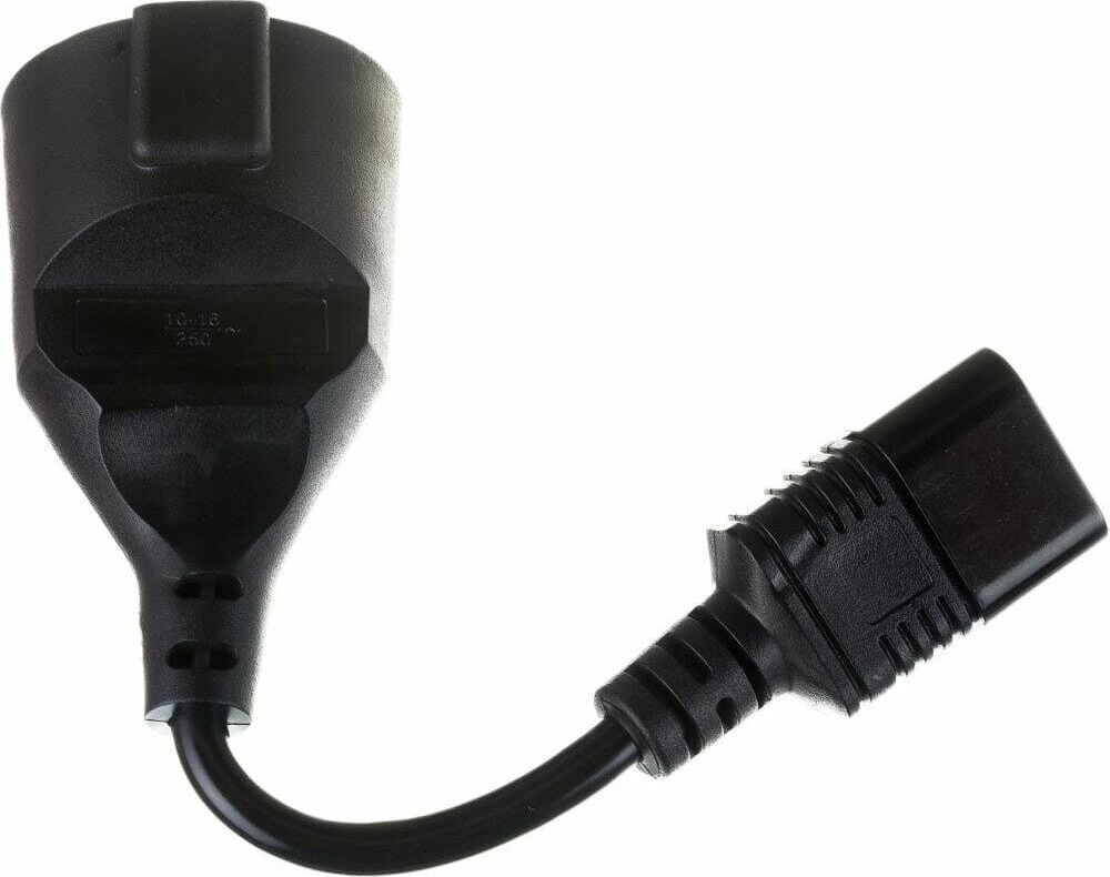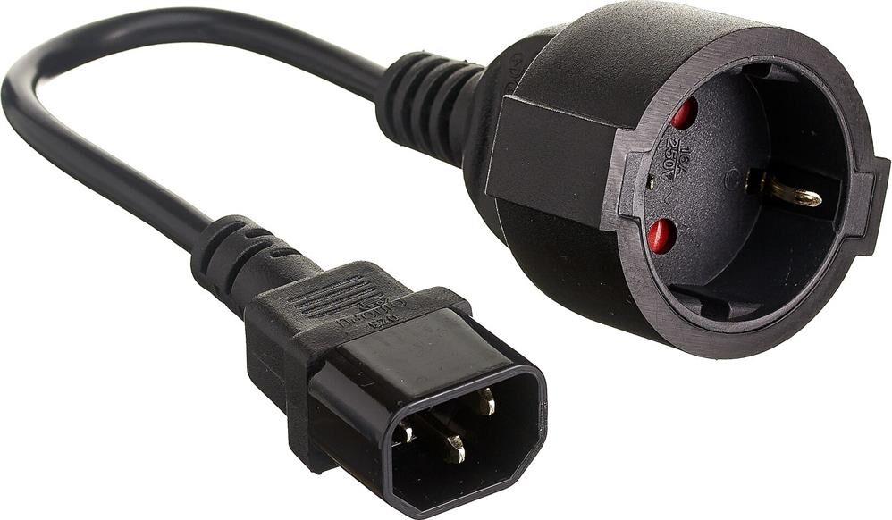 Артикул № 973280 Переходник предназначенн для индивидуального блока питания, обладает компактными размерами и практически не занимает места при использовании. При этом аксессуар имеет входную вилку IEC 320 C14 (компьютерная) и евророзетку на выходе. Модель выдерживает максимальный ток нагрузки до 10 А. Длина кабеля переходника составляет 15 см. Аксессуар позволяет поддерживать работоспособность ИБП.