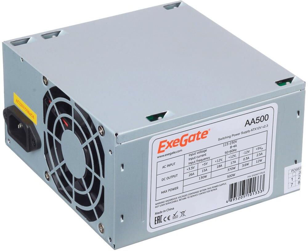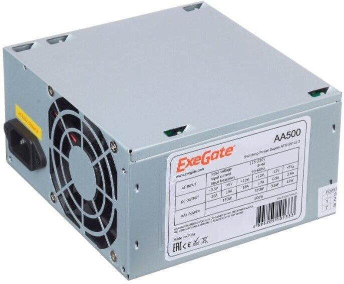 Exegate EX235029RUS Блок питания 500W RM-500ADS APFC,2х8 cm fan, 20+4pin/(4+4)pin , 2xPCI-E 9xSATA (