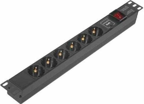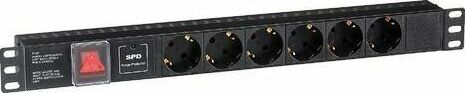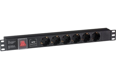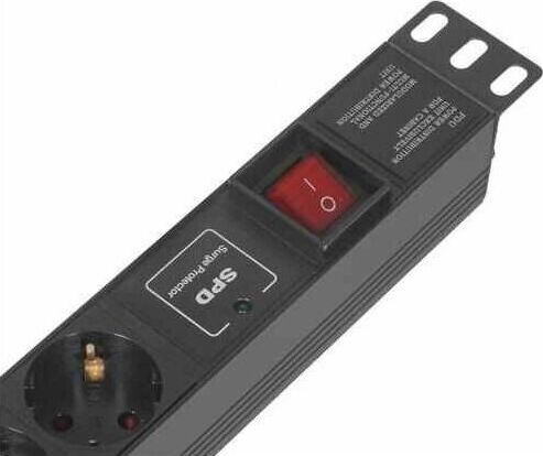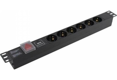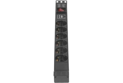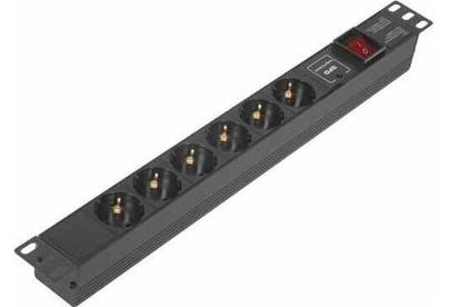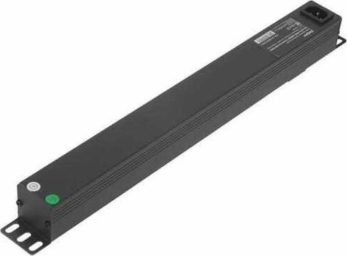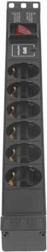 Тип: Блок розеток; Цвет: черный; Количество розеток: 6 розеток; Шторки на розетках: есть; Отдельный выключатель для каждой розетки: нет; Максимальный ток нагрузки: 10 А; Функции защиты подключаемых устройств: н/д; Индикация: индикация включения; ЖК-дисплей: нет; Кабелеукладчик: нет; Прочие особенности и свойства: Кабель для подключения к электросети - Приобретается отдельно, Высота 1U, Установка в стойку 19", Выключатель с подсветкой и крышкой, C заземлением, Вход питания IEC-320-C14 (компьютерная
