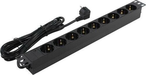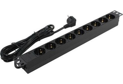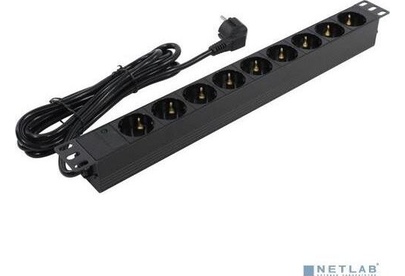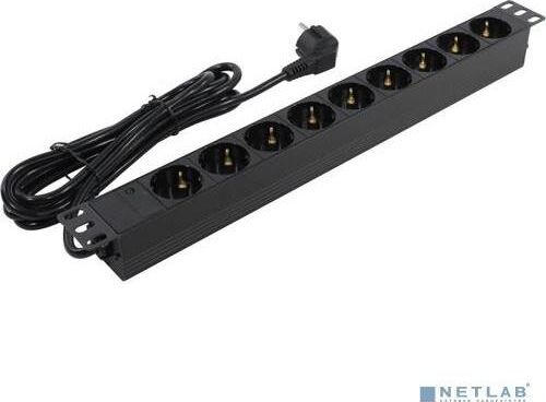 [Сетевой фильтр] Exegate EX280851RUS Блок розеток ExeGate ServerPro PDU-19H905 Al-9S-EU3, 19",1U,алюм, 9Schuko, евровилка, 3м