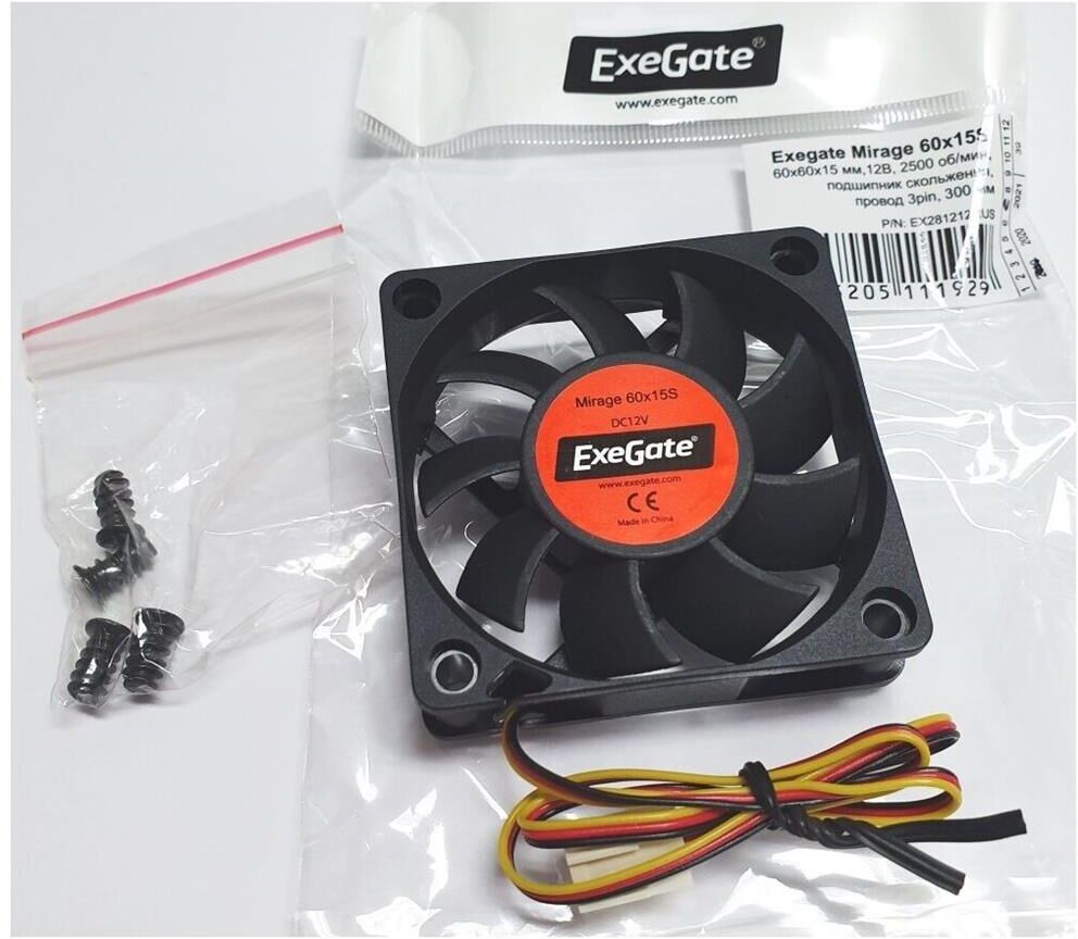 [Вентиляторы] Exegate EX281212RUS Вентилятор ExeGate Mirage-S 60x60x15 подшипник скольжения, 3500 RPM, 26dB, 3pin