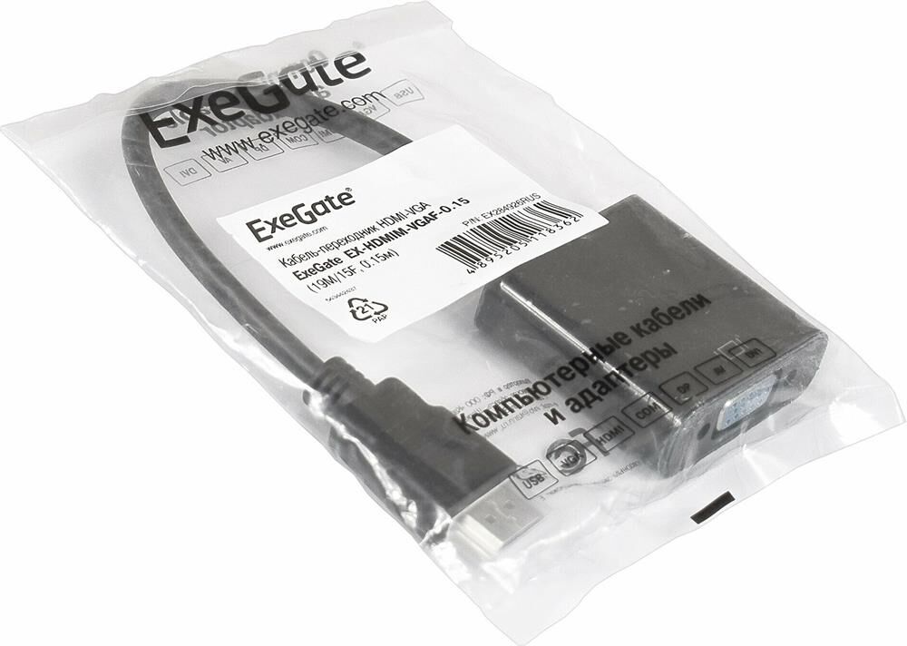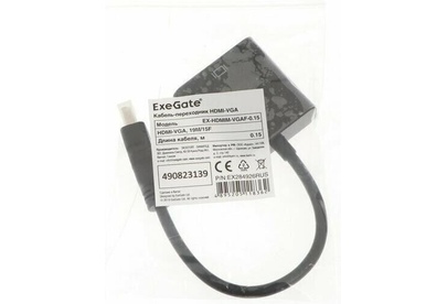 Кабель-переходник ExeGate EX-HDMIM-VGAF-0.15, HDMI-VGA, 0.15 м, черный -Вес: 35 г. -Фасовка: 1 шт -Тип индивидуальной упаковки: Пакет -Длина упаковки: 12 -Высота упаковки: 1.5 -Ширина упаковки: 9 -Объем упаковки: 0.162 -Объем продукта: 0.18 -Объем бокса: 1.8 -Материал: Металл, пластик -Гарантийный срок, мес: 12 -Температурное ограничение: Нет -Разъёмы: HDMI/VGA