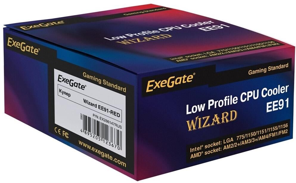 Кулер ExeGate Wizard EE91-RED, all sockets,75W, красн,90мм (EX286147RUS) Ширина, мм: 119. Высота, мм: 67. вес брутто: . вес нетто товара: . Гарантийный срок: 12 МЕС. Подсветка: Да. Материал основания: алюминий. Размер вентилятора: 90x90 ММ. Максимальная скорость вращения: 2200. Разъем вентилятора: 3 pin. Максимальный уровень шума во время работы: 22 ДБ. Совместимый Socket: 775. Коммерческий: Нет. Для геймеров: Нет. Минимальная скорость вращения, об/мин: 2200. Максимальный воздушный поток, куб.