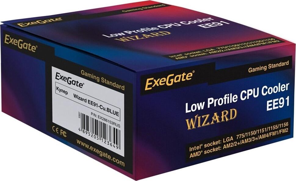 Exegate EX286154RUS Кулер ExeGate Wizard EE91-PWM.Cu.BLUE (Al+Copper, LGA775/1150/1151/1155/1156/120