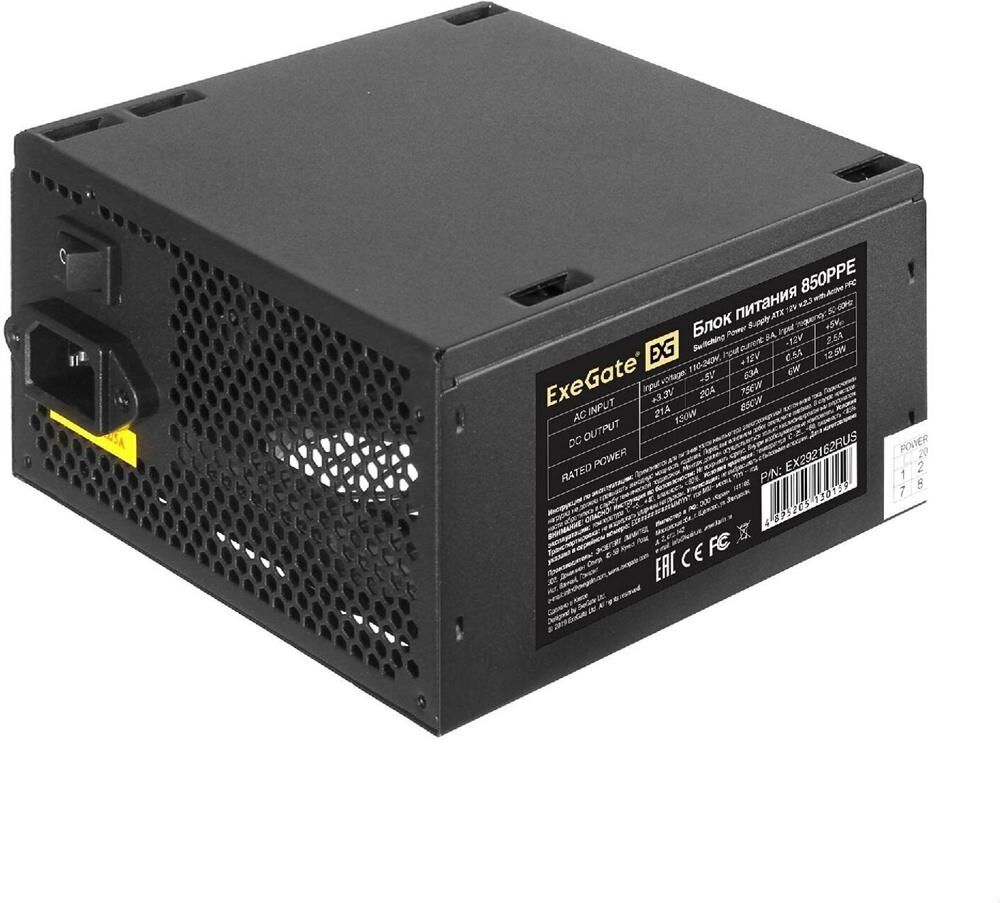EXEGATE EX292162RUS-PC Блок питания 850W 850PPE (ATX, APFC, PC, КПД 80% (80 PLUS), 12cm fan, 24pin,