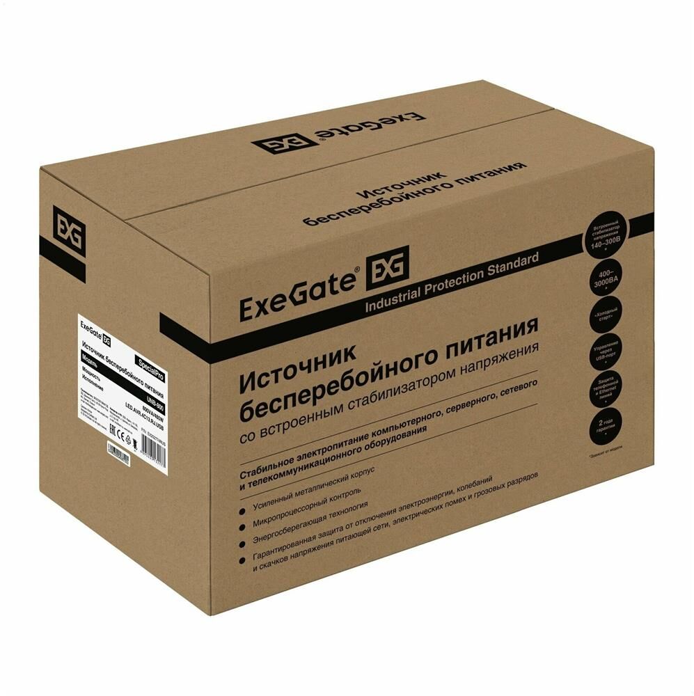 EXEGATE EX292774RUS ИБП SpecialPro UNB-800.LED.AVR.4C13.RJ.USB <800VA/480W, LED, AVR, 4*C13, RJ45/11