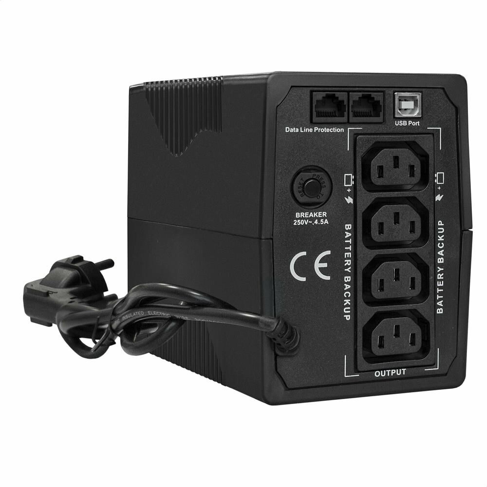 1000 ВА, 550 Вт, ступенчатая аппроксимация синусоиды, кол-во выходных разъемов: 4, кол-во выходных разъемов с питанием от батарей: 4, тип выходных разъемов: C13, время работы при половинной нагрузке: 2.1 мин