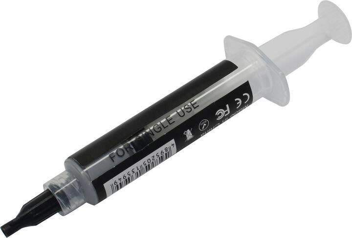 Общее описание: Высокий коэффициент теплопроводности обеспечивает эффективное рассеивание тепла. Оптимальная консистенция. Герметичный шприц удобен при дозировке и нанесении пасты на охлаждаемую поверхность. Широкий ассортимент фасовки. Лопатка в комплекте для равномерного нанесения. Особенности Тип термоинтерфейса: Термопаста Теплопроводность, Вт/(м•К): >13,6 Рабочая темпера-тура, °C: -50~350 Удельный вес, г /см3: 3,25 Вязкость, пуаз: 1000 Удельное объемное электрическое сопротивление, Ом•см: 3.9*10^13