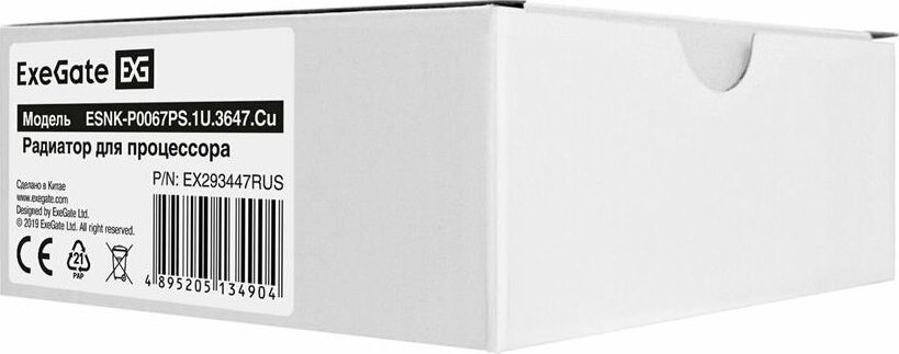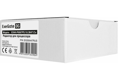 [Вентиляторы] Exegate EX293447RUS Радиатор для процессора ExeGate ESNK-P0067PS.1U.3647.Cu (Al+Cu, 1U, 2 тепл. трубки, LGA3647, TDP 165W, 230г, на винтах, с термопастой Retail box)