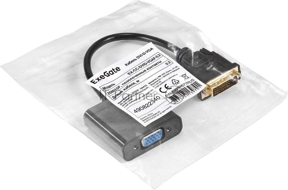 EXEGATE EX294677RUS Кабель DVI-D-VGA EX-CC-DVID-VGAF-0.2 (25M/15F, 0,2м, позолоченные контакты)