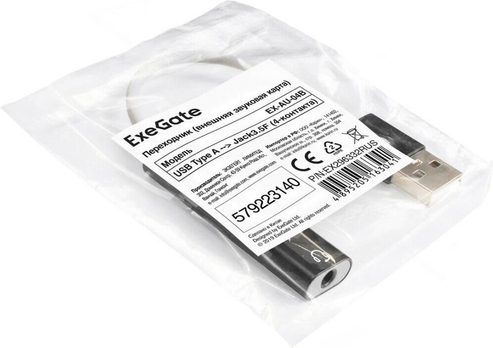 [Переходник] Exegate EX296332RUS Кабель-адаптер для подключения телефонной гарнитуры к порту USB ExeGate (внешняя звуковая карта USB, 1x Jack3.5 F (4-контакта), кнопки: volume +, volume -, play/pause/n