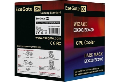 [Вентиляторы] Exegate EX293655RUS Кулер ExeGate Wizard EXX400V2-PWM.FRGB (Al+Cu, 4 тепл.трубки,LGA775/1150/1151/1155/1156/1200/1700/AM2/AM2+/AM3+/AM4/FM1/FM2/754/939/940, TDP 140W, Fan 120mm, PWM, 800-2400RPM