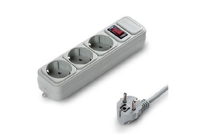 Евророзетки и евровилка с заземлением. Номинальное напряжение, В 220. Максимальная мощность нагрузки, Вт 2200. Тип защиты: термопрерыватель, совмещенный с выключателем.