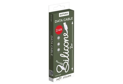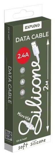 EXPLOYD (EX-K-1497) USB - microUSB/круглый/силикон/белый/2М/2.4A
