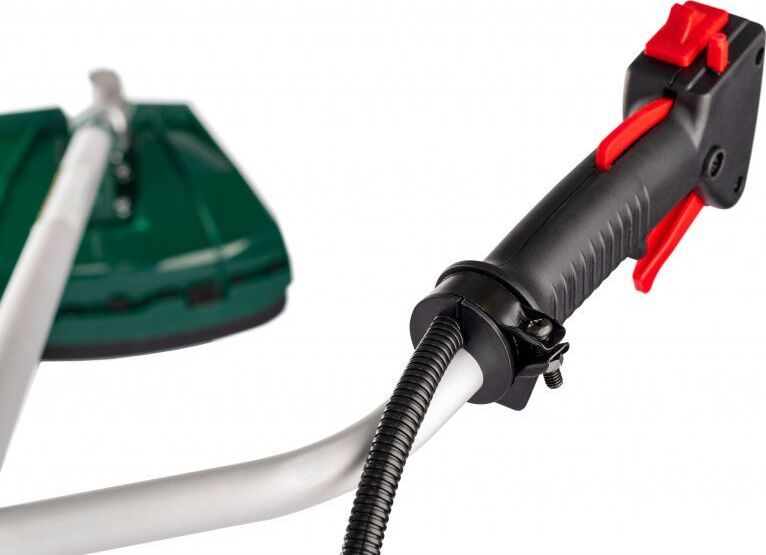 Потребляемая мощность (л.с.) 3.3. Объем двигателя (м3) 56. Тип двигателя Двухтактный. Объем топливного бака (л) 1.2. Скорость вращения (об/мин) 9000. Ширина кошения нож/леска (мм) 255/440. Диаметр лески (мм) 2.4. Регулируемая рукоять велосипедного типа Да. Легкий доступ к воздушному фильтру Да. Защита топливного бака Да. Работа ножом и леской Да Комплектация Шпуля Да. Канистра для топливной смеси Да. Наплечный ремень Да. Набор инструментов Да. Кожух Да. Трехлопастной нож Да.