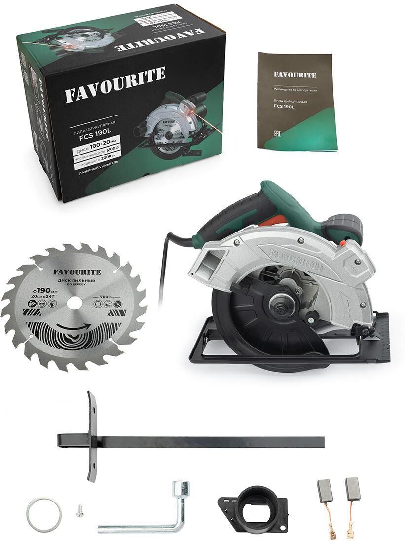 Пила циркулярная FCS 190L Мощность - 2000 Вт Диаметр диска - 190 мм кол-во зубьев диска - 24 Кол-во оборотов - 5100 об/мин Губина пропила под углом 45°/90° - 43/65 мм Лзерный указатель реза В комплекте: Пила циркулярная, диск, ключ, направляющая.