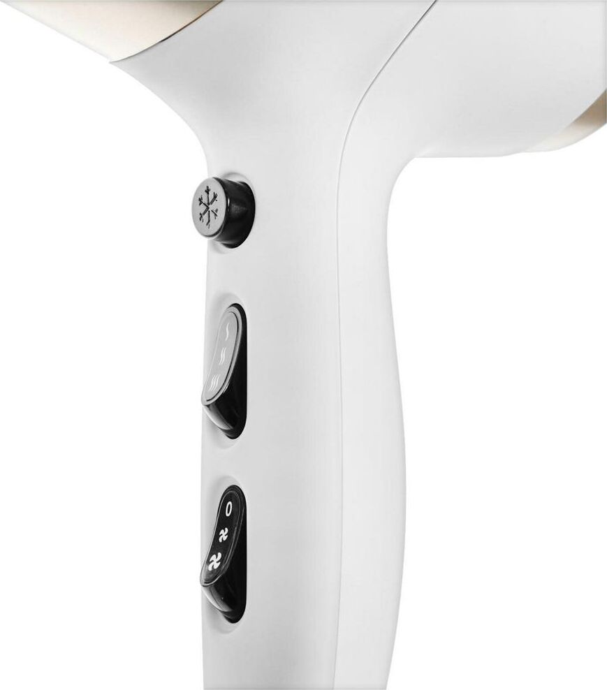 Фен для волос Мощность: 2400Вт 2 скорости 3 режима нагрева Дополнительная насадка-диффузор Прорезиненная ручка Кнопка холодного обдува Концентратор для сушки и моделирования Петелька для подвешивания Защита от перегрева Двигатель DC Сеть: 220-240В, 50Гц