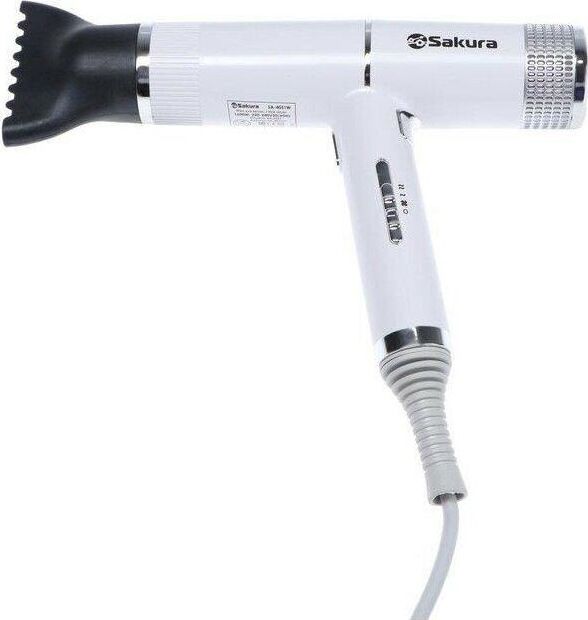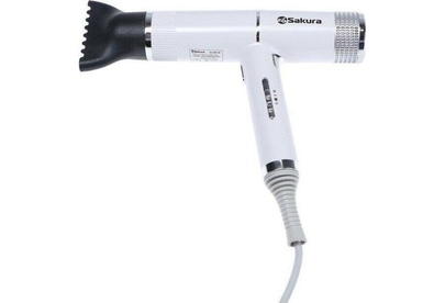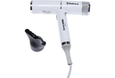 Фен электрический, 1600 Вт, 3 режима работы (без нагрева, I скорость + теплый воздух, II скорость + горячий воздух), функция обдува холодным воздухом Cool Shot, LED подсветка при включении, насадка-концентратор, шнур питания 1,8 м, защита от перегрева.