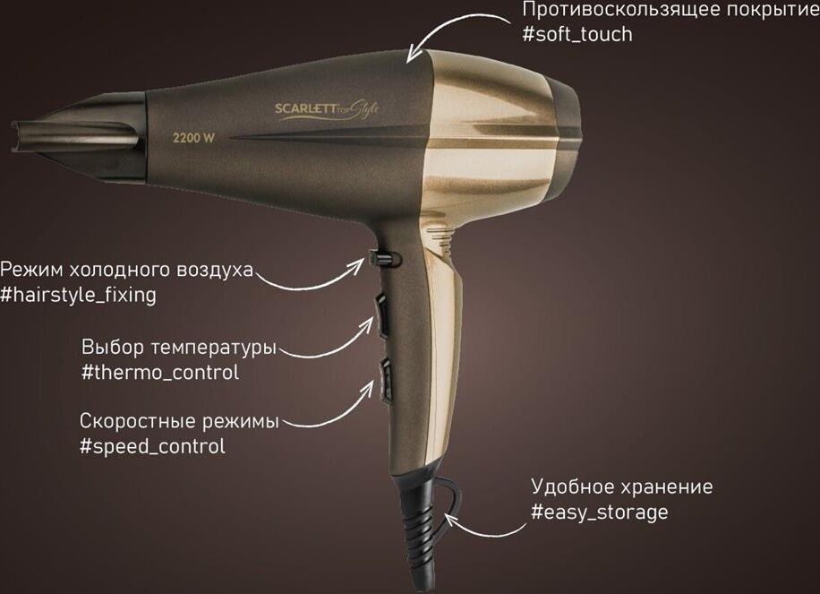 Фен SCARLETT TOP STYLE SC-HD70I26 мокко