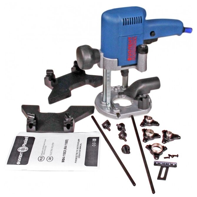 параллельный упор - 2 шт, ограничитель - 1 шт, набор копировальных втулок - 4 шт