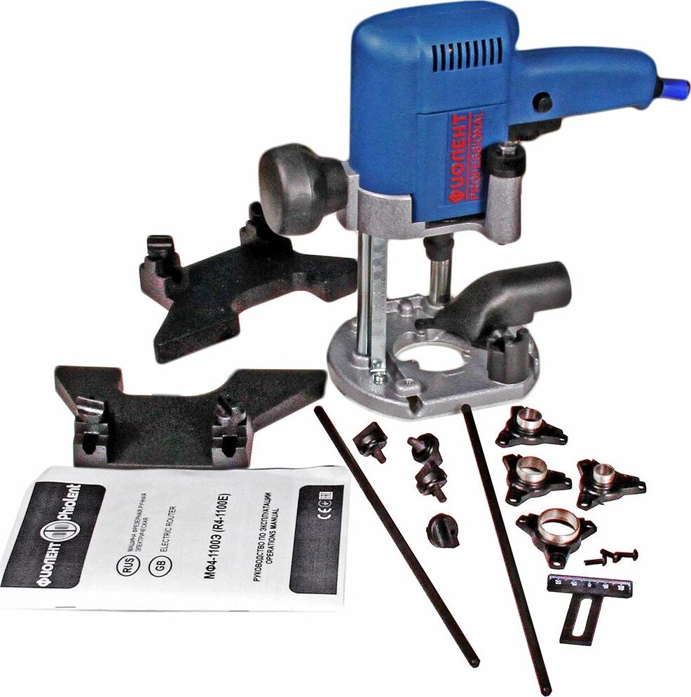 параллельный упор - 2 шт, ограничитель - 1 шт, набор копировальных втулок - 4 шт