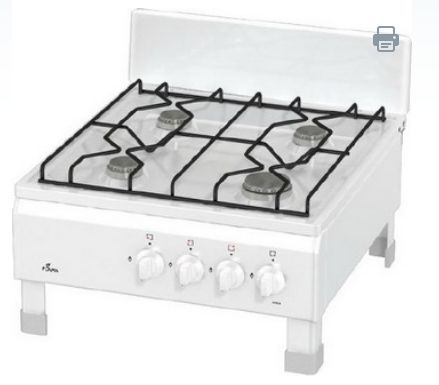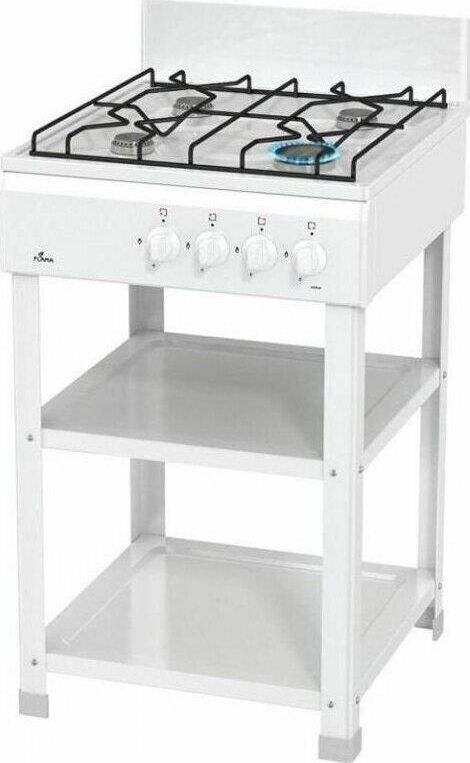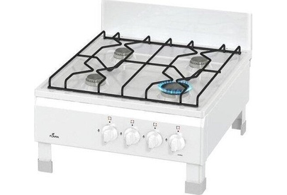 Размеры(ВхШхГ) 20х50х57см, газовая плита, 4 конфорки, решетки проволочные, цвет белый, эмалированная рабочая поверхность