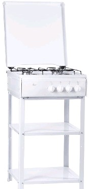 Размеры (ШхВхГ) 50x85x58см Газовая плита,управление механическое,эмалированная рабочая поверхность, 4 конфорки,возможность работы от газового баллона,металлическая крышка,проволочная решетка, цвет белый.