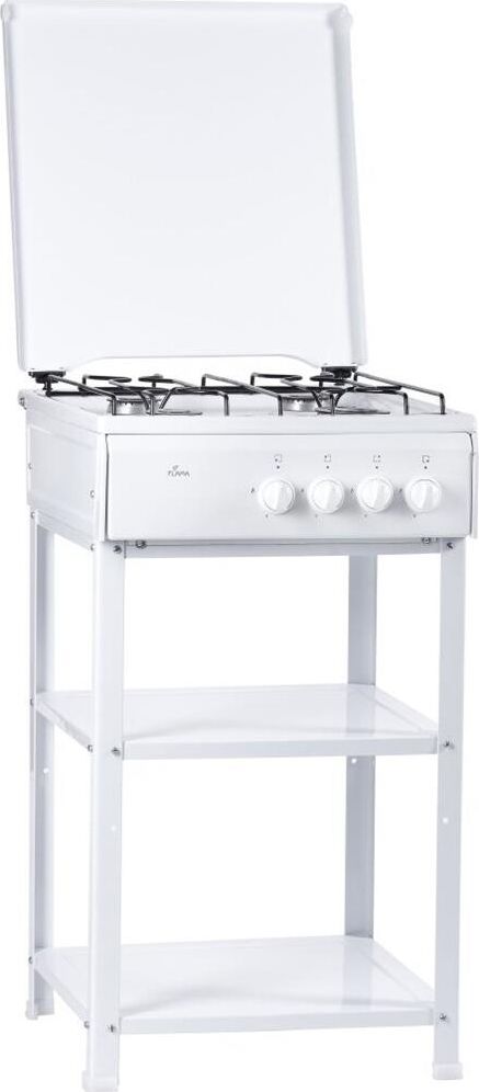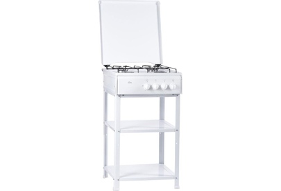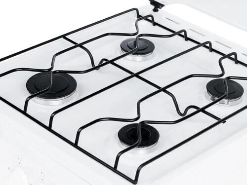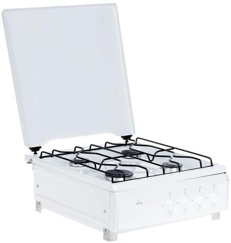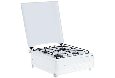 Размеры (ШхВхГ) 50x85x58см Газовая плита,управление механическое,эмалированная рабочая поверхность, 4 конфорки,возможность работы от газового баллона,металлическая крышка,проволочная решетка, цвет белый.