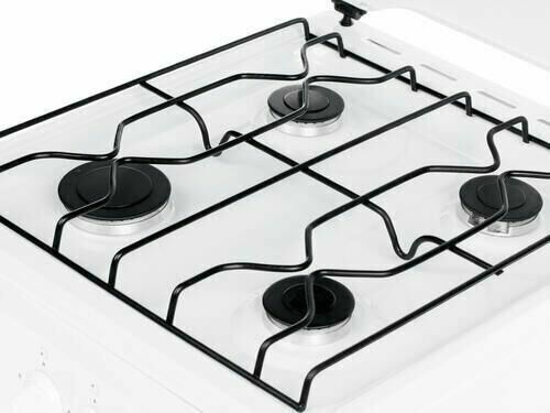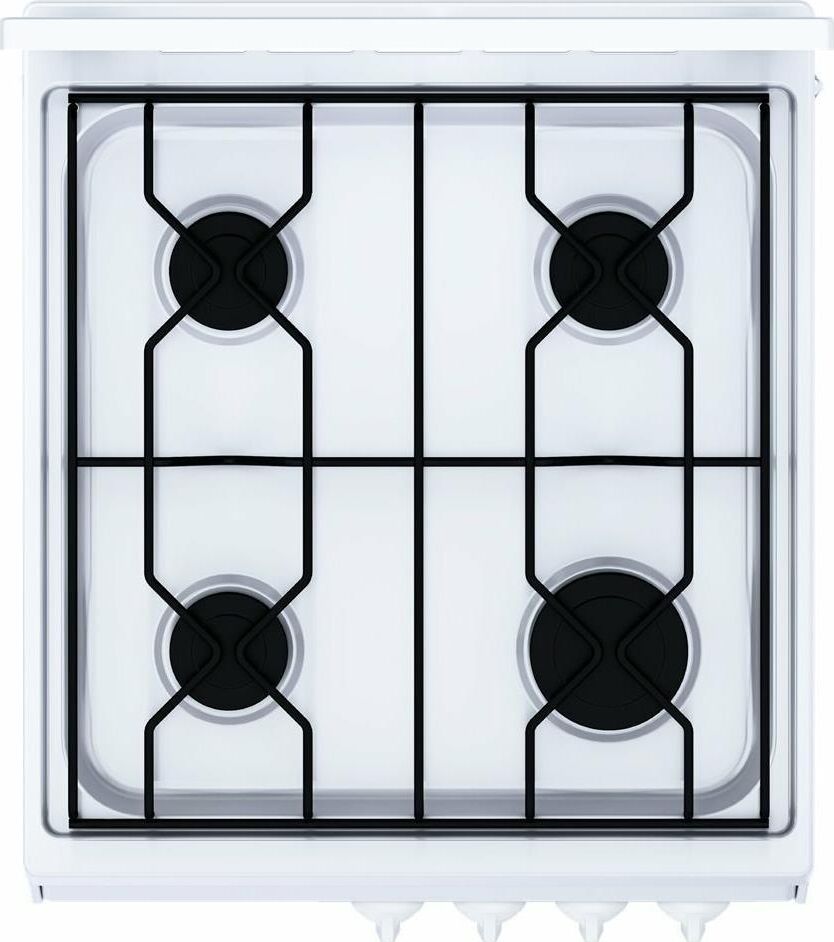 Размеры (ШхВхГ) 50x85x58см Газовая плита, управление механическое,эмалированная рабочая поверхность, 4 конфорки,проволочная решетка, Материал варочной поверхности эмаль Материал крышки/щитка металл Цвет белый Материал духового шкафа эмаль