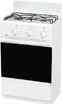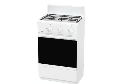 (ВхШхГ) 85 Х 50 Х 40,5см. 2 газ. горелки. Мощность горелок: Передняя левая - 1,3 кВт, Передняя правая - 2,1 кВт. Мощность горелки духовки 2,1кВт. Объем духовки 30л. Щиток. Проволочная решетка стола. Хоз. отсек. Газ-контроль горелки духовки. Цвет белый.