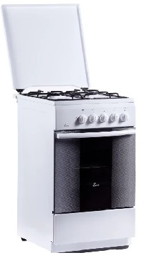 (ШхВхГ) 50*85*60см.Вес 33 кг. Цвет белый.Число конфорок 4.Объем духовки 50 л. Вид управления поворотный механизм.Термостат. Материал изготовления поверхности эмалированная сталь.Материал решеток (держателей) сталь.Газ-контроль духовки. Очистка духовки традиционная.Количество стекол дверцы духовки 2.Ящик для посуды.Стандартный противень, решетка.