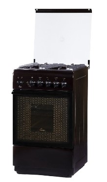 ШхГхВ: 50x58x85 см •газовая плита * Цвет коричневый * •эмалированная рабочая поверхность * •4 конфорки * •газовая духовка, 50 л, Газ-контроль духовки, Подсветка * чугунные решетки * •механическое управление * Ящик для посуды