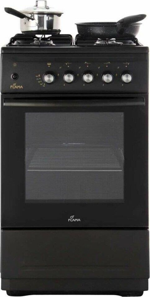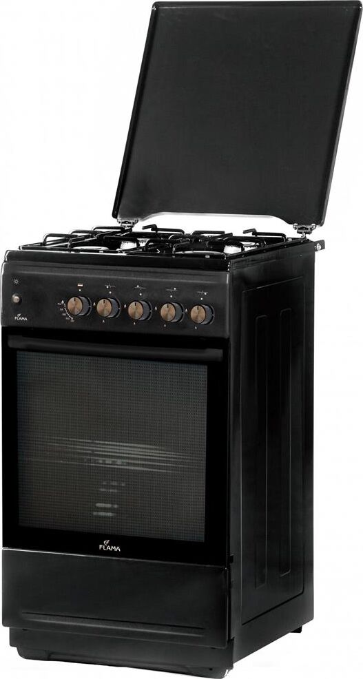 Газовая плита FLAMA N FG 24236 At, газовая духовка, металлическая крышка, цвет антрацит. Материал рабочей поверхности эмалированная сталь. Материал решетки сталь. Управление механическое. Класс энергопотребления C. Ящик для хранения посуды. Количество газовых конфорок 4. Электроподжиг в поворотной ручке. Тип духовки газовая. Объем духовки 50 л. Мощность духовки 2400 Вт. Газ-контроль духовки. Количество стекол дверцы духовки 2. Освещение духовки лампа накаливания. Размеры (ШхВхГ) 50 х 85 х 60 см Вес (нетто) 35 кг
