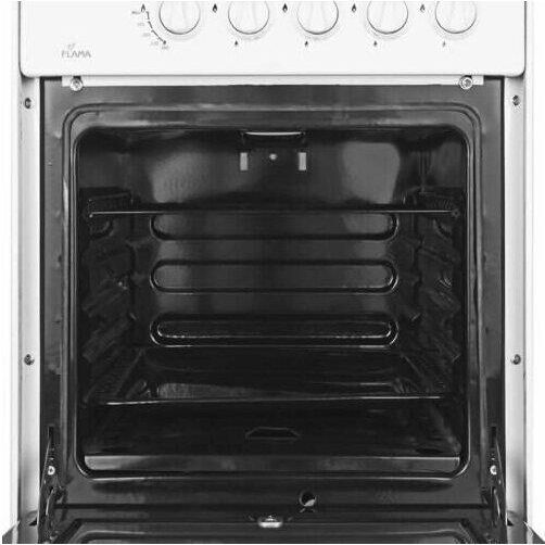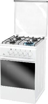 •газовая плита * Цвет белый * •эмалированная рабочая поверхность •4 конфорки, Газ-контроль конфорок * •газовая духовка, 50 л, Газ-контроль духовки * •ШхГхВ: 50x60x85 см * •механическое управление * Ящик для посуды