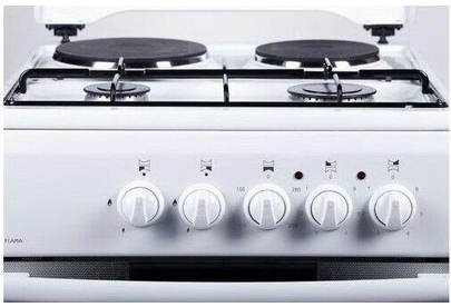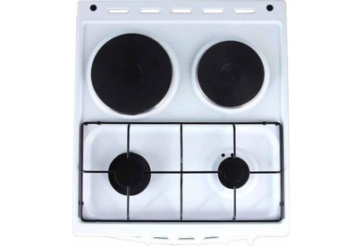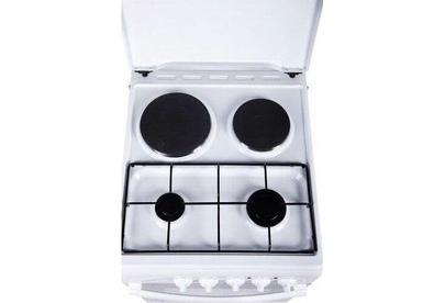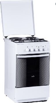 Размеры (ШхГхВ) 50x54х85см, объем духовки 50 л, 4 конфорки, метал. крышка, хоз. отсек, комбинированная (верх-2-газ/2-электро), электрическая духовка, профильная решетка стола, подсветка
