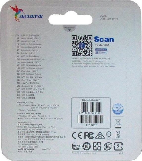Флешка (USB) A-DATA 32GB UV240 красный (AUV240-32G-RRD)
