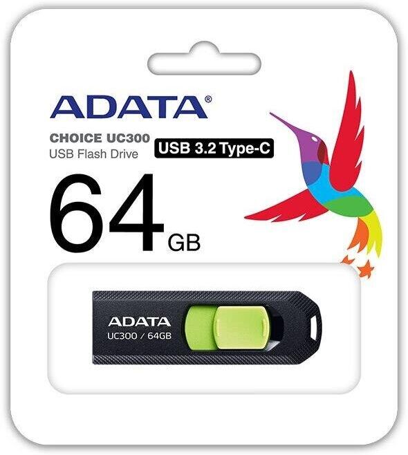 Флешка (USB) A-DATA ACHO-UC300-64G-RBK/GN черный/зеленый