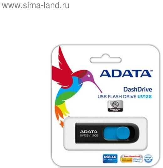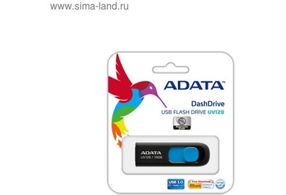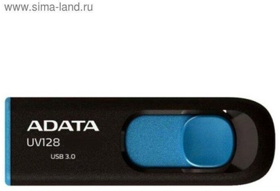 Флешка (USB) A-DATA Флешка USB DashDrive UV128 128ГБ, USB3.0, черный и синий [auv128-128g-rbe]