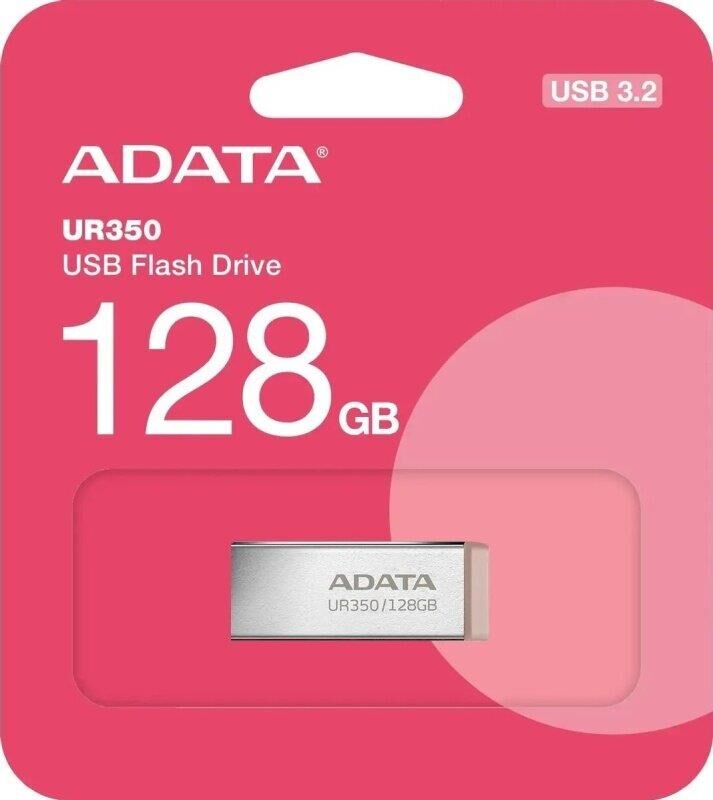 Флешка (USB) A-DATA Флешка USB UR350 128ГБ, USB3.2, серебристый и коричневый [ur350-128g-rsr/bg]