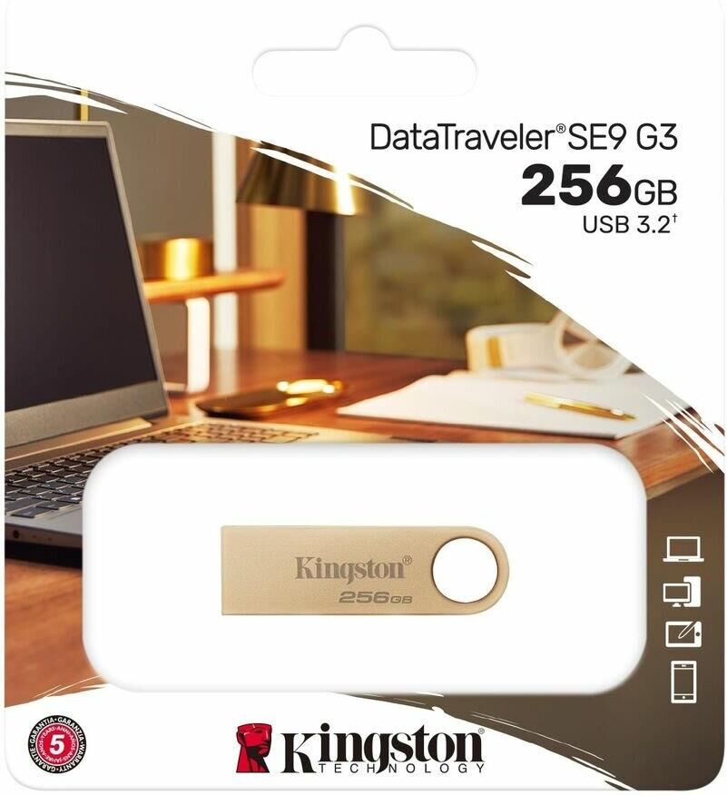 Флешка (USB) KINGSTON Флешка USB DataTraveler SE9 256ГБ, USB3.2, золотистый [dtse9g3/256gb]