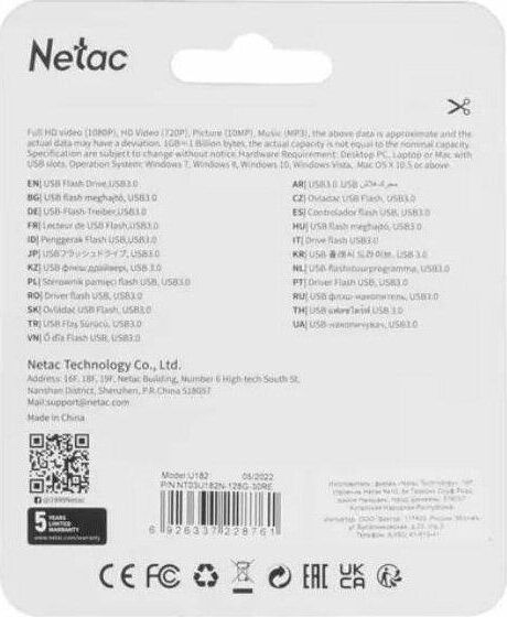 Флешка (USB) NETAC 128GB NT03U182N-128G-30RE
