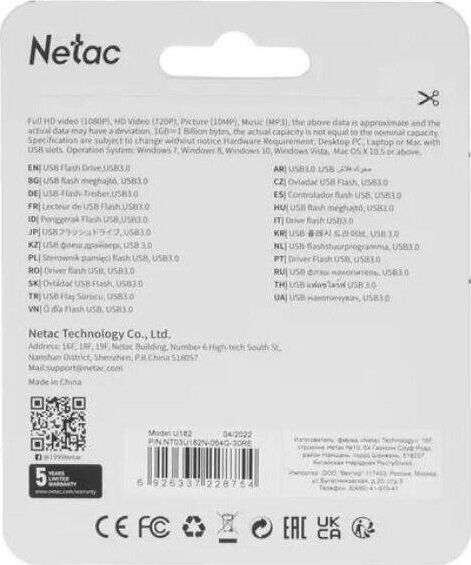 Флешка (USB) NETAC 64GB NT03U182N-064G-30RE