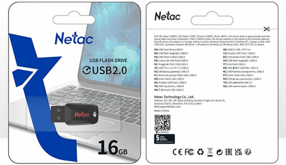 Флешка (USB) NETAC Флеш Диск 16GB U197 NT03U197N-016G-20BK USB2.0 черный/красный