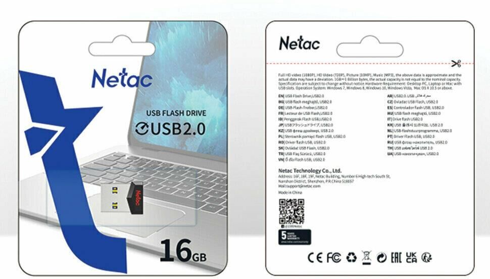 Бренд NETAC Модель UM81 Объем 16 ГБ Интерфейс USB2.0 Разъем USB А, открытый Комплектация Кол-во шт. в упаковке 1 шт Материалы Материал корпуса пластик Цвет, размеры, вес Цвет черный Размеры 18.3 x 13.85 x 7.65 мм